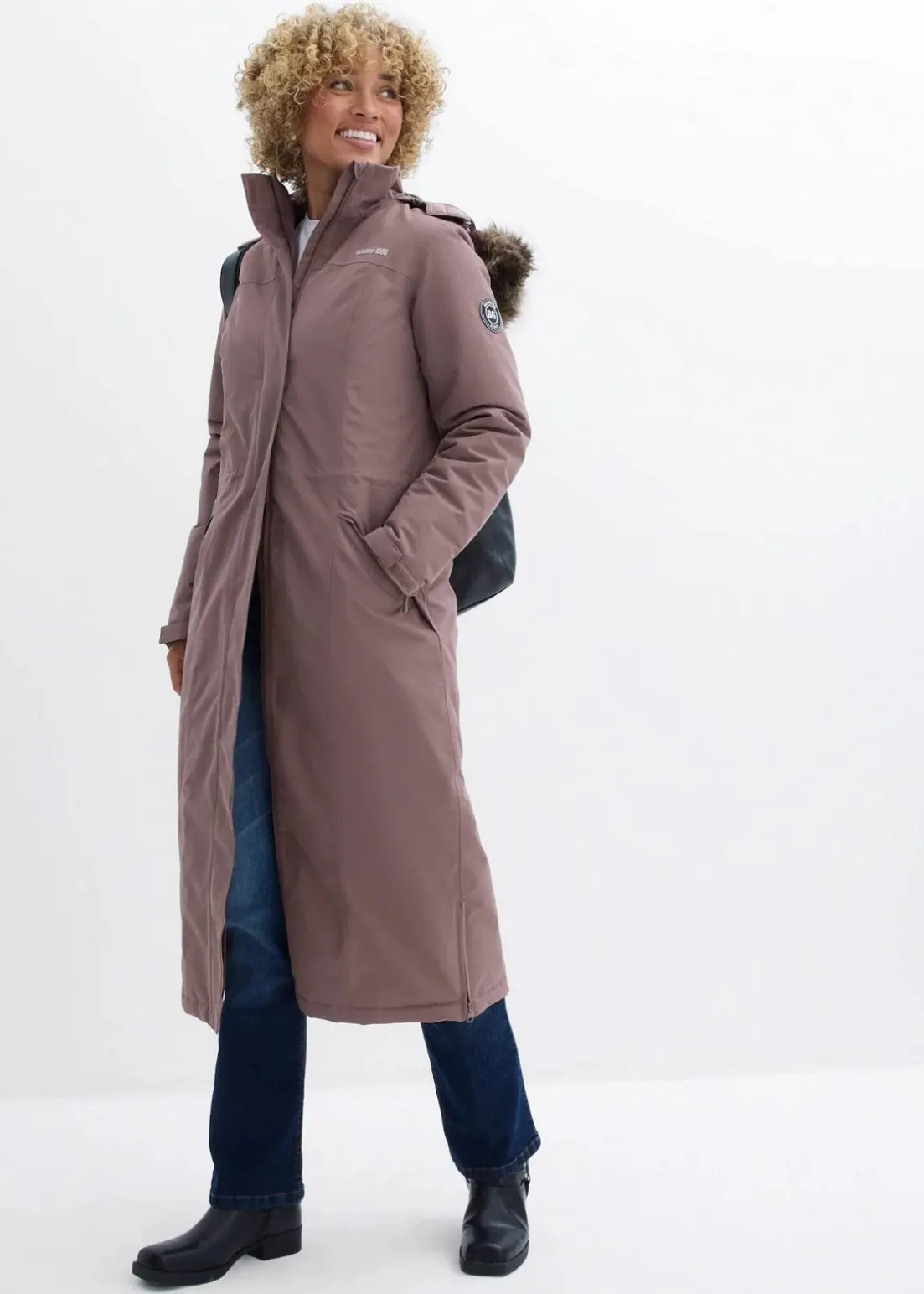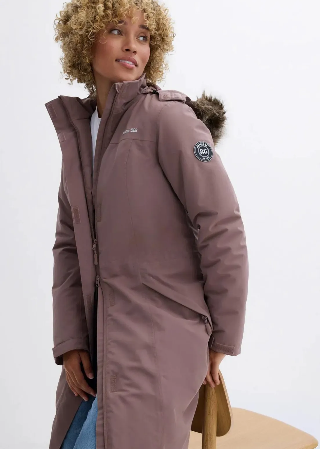 weitenverstellbarer Funktions-Regenmantel mit abnehmbarer Kapuze und Fell