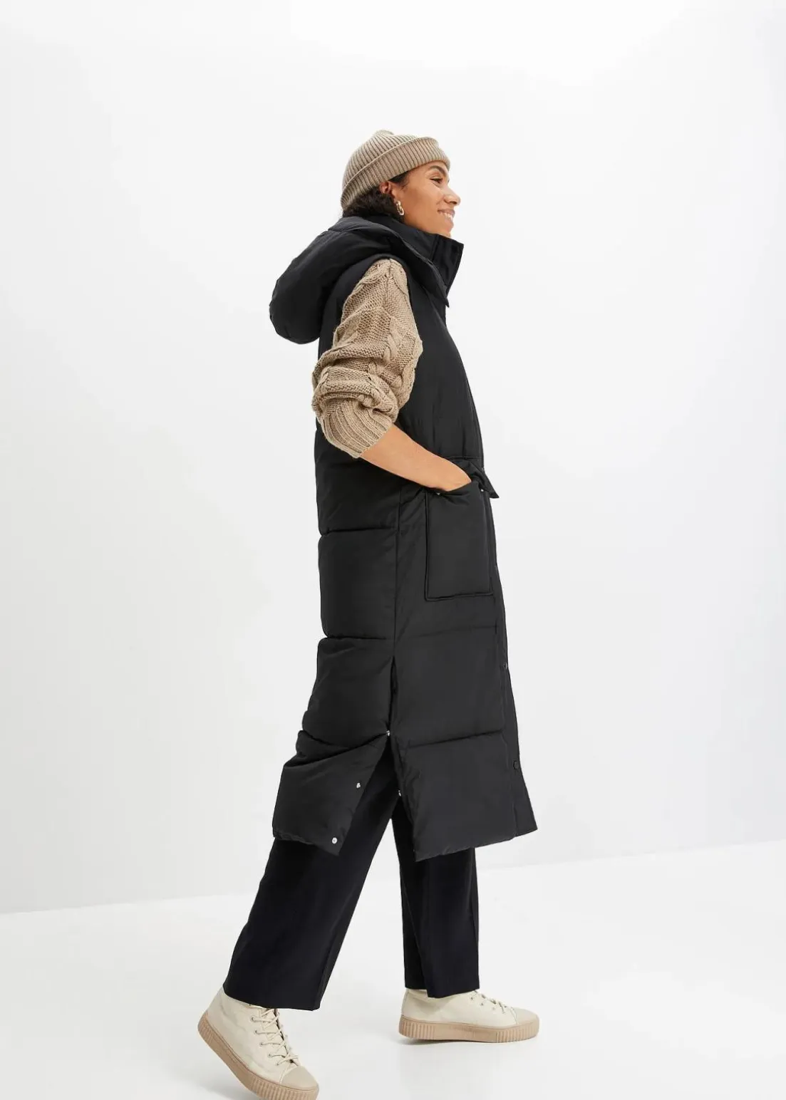 Lange Steppweste mit aufgesetzten Taschen
