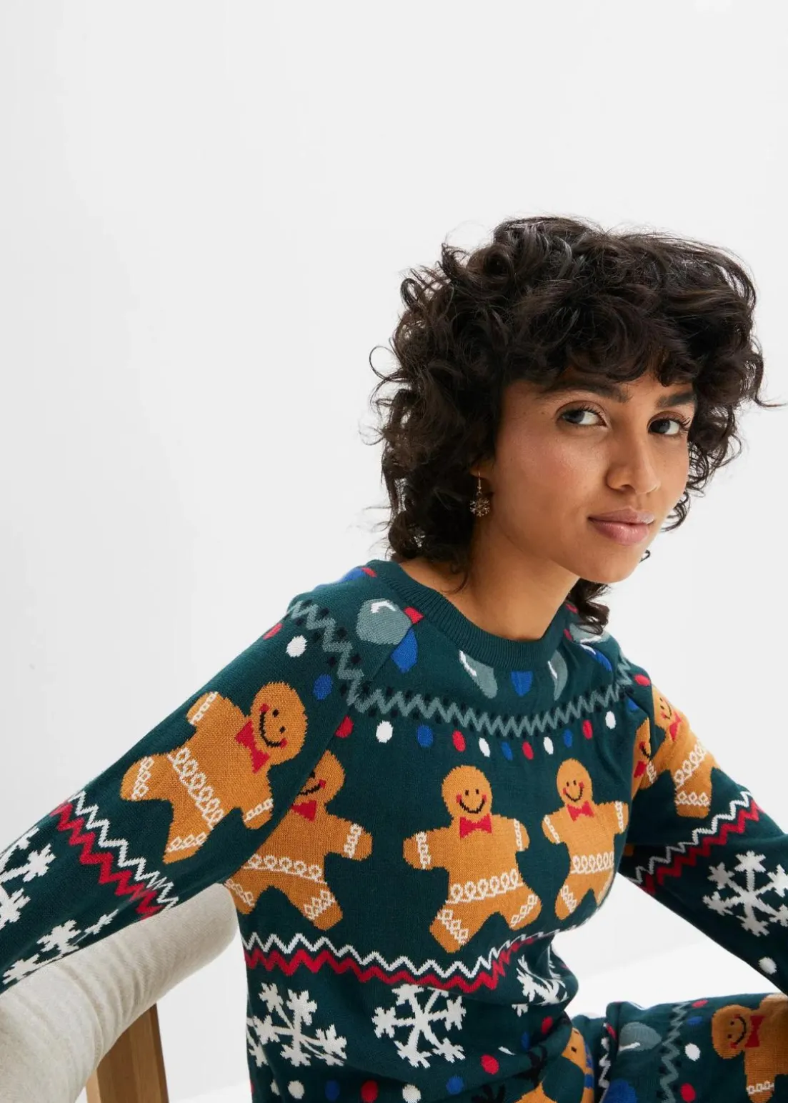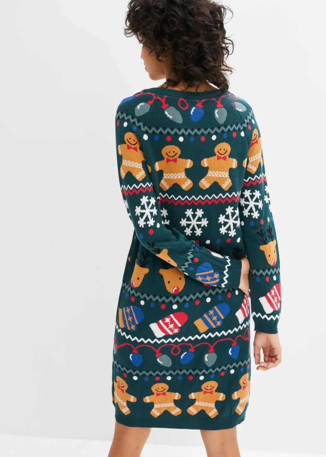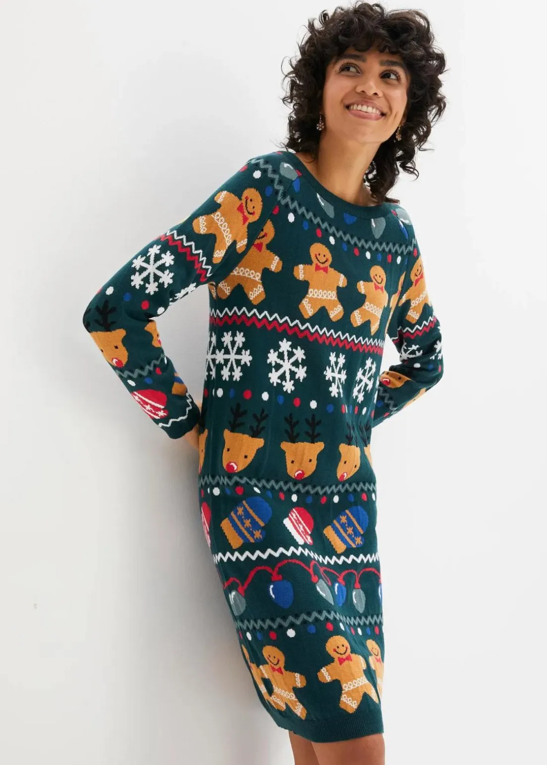 Gemütliches Strickkleid mit bequemen Schnitt und weihnachtlichem Motiven