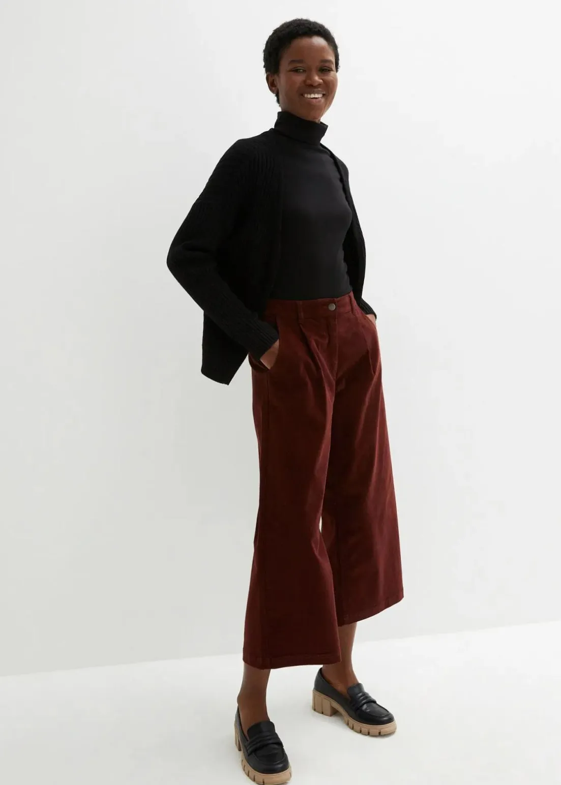 Weit geschnittene Culotte aus Stretchcord mit komfortablen hohen Bund