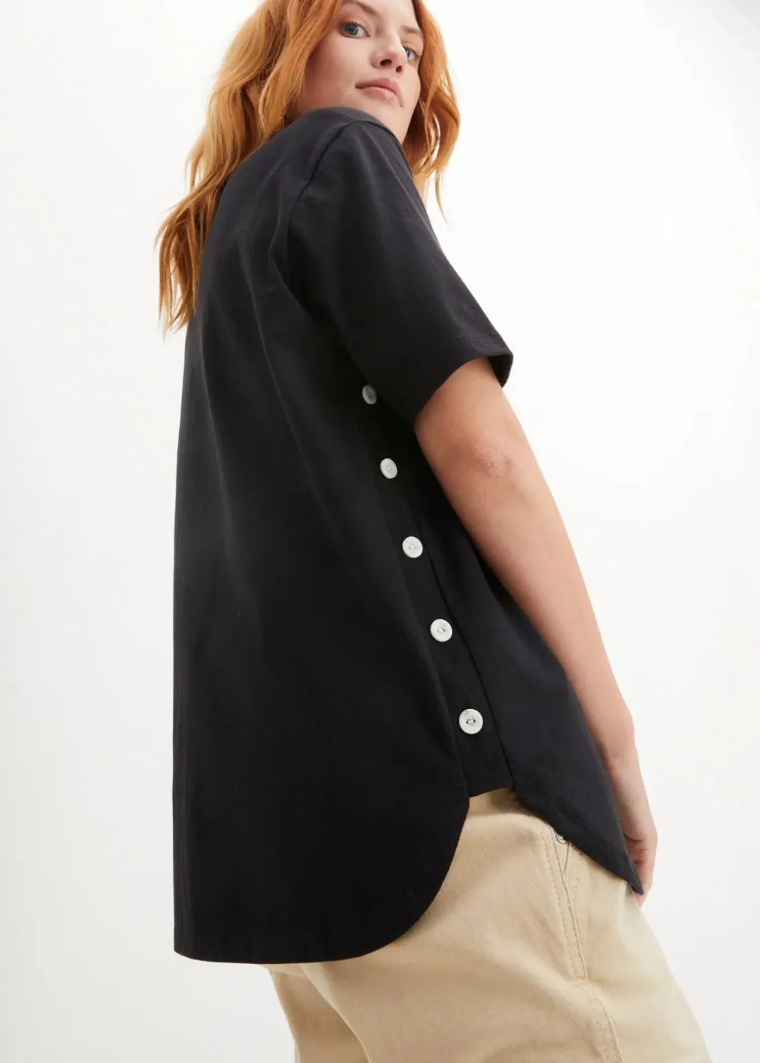 T-Shirt mit Knopfdetail an der Seite aus Bio-Baumwolle und V-Ausschnitt