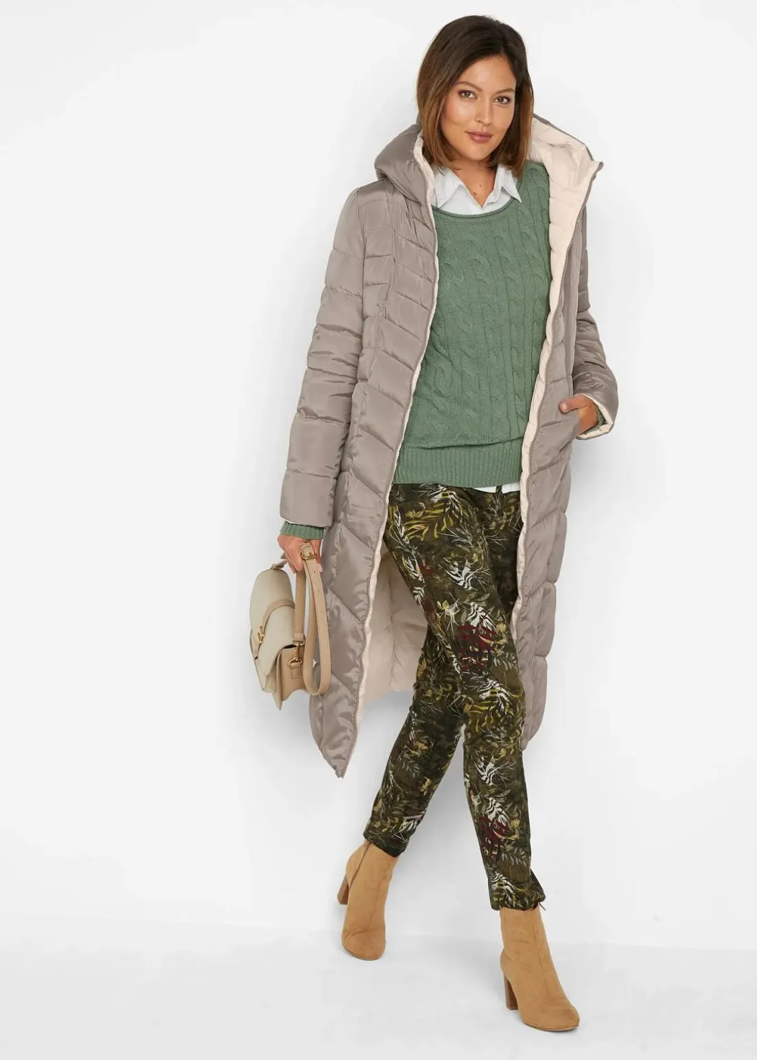 Durch die Wendefunktion ist der modische Steppmantel vielseitig kombinierbar.