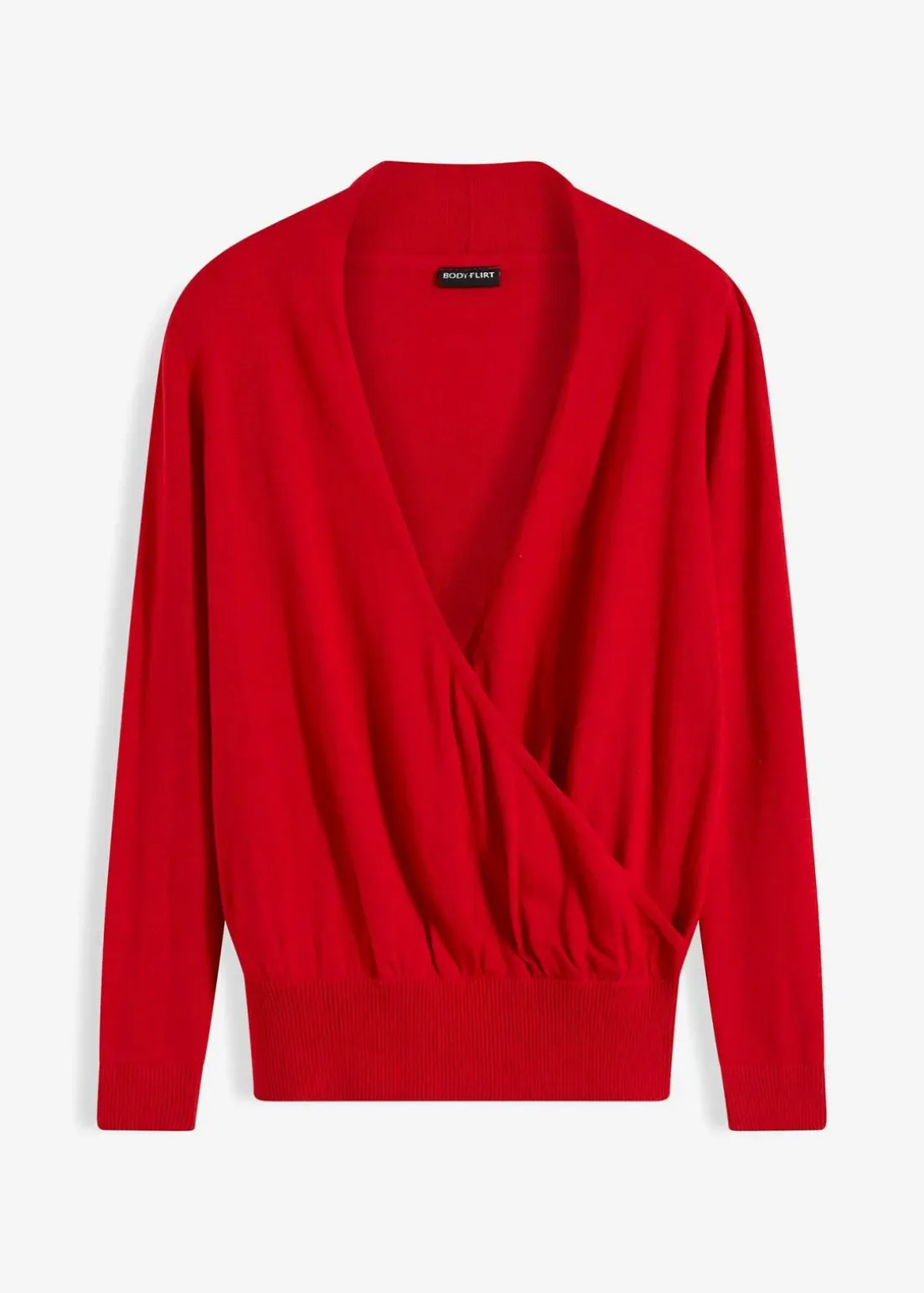 Der Wickeleffekt erzeugt bei diesem Modell von BODYFLIRT einen tiefen V-Ausschnitt. Dieser ermöglicht das Spiel mit Tops. Ob Spitze, Kontrastfarbe oder Muster – Mit jedem Exemplar erhält der Wickel-Pullover einen neuen Twist. Für einen gelungenen Abschluss sorgt der gerippte, etwas breiter ausfallende Saum. Das Rippstrickdesign findet sich auch an den Ärmelenden wieder.Ob lässig zu Jeans und Boots über einem schlichten Shirt getragen oder etwas raffinierter in der Kombination mit Spitze und Lederleggings: Der Wickel-Pullover begeistert in vielen Varianten.