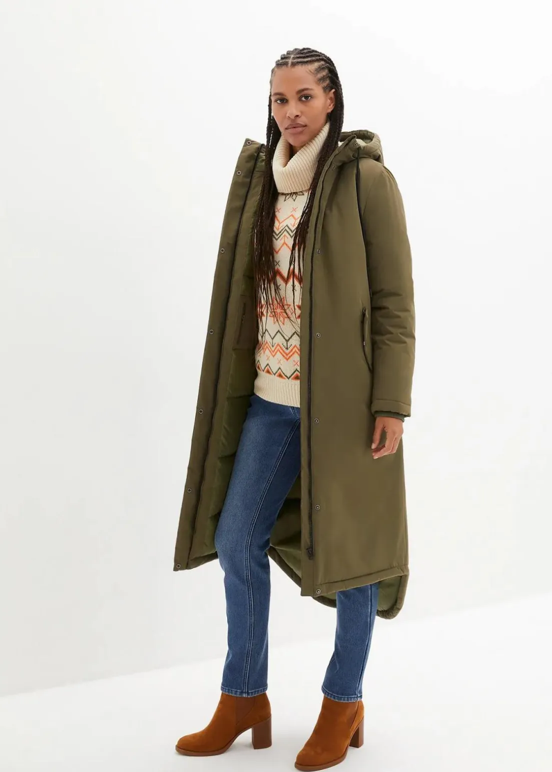 Langer Wintermantel mit Innensteppung