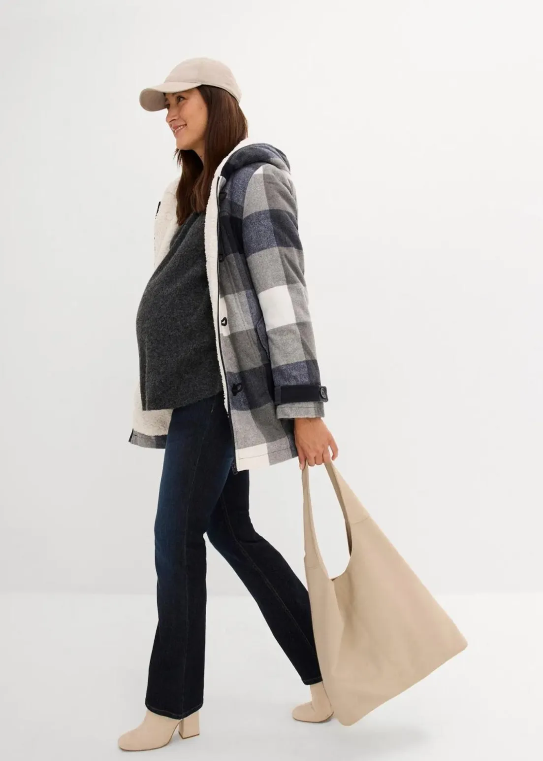 Gemütliche Woll-Umstandsjacke für die gesamte Schwangerschaft und danach. Der Baby-Einsatz dient nur zum Schutz bei Wind und Wetter, nicht als Tragefunktion!